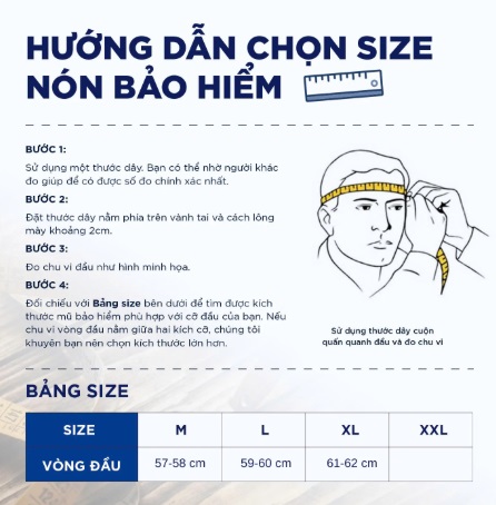 HƯỚNG DẪN CHỌN KÍCH CỠ(SIZE) MŨ BẢO HIỂM